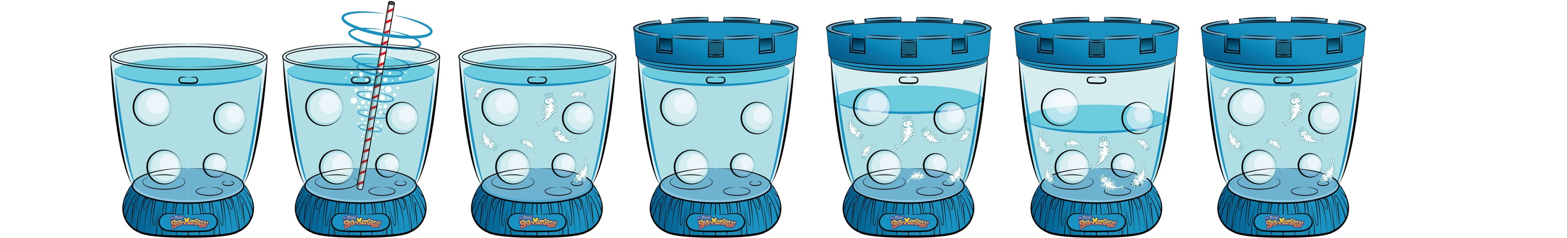 When the water level drops by 2 inches (5 cm), replace it with room temperature distilled or bottled water and scoop out any contaminants that may have found their way into the tank. No additives are needed. As the water evaporates, the salts and minerals in the formula become concentrated. This helps the Sea-Monkeys® to molt their shells during the growing process and helps perpetuate the natural life cycle. Sea-Monkeys® do not have internal bones like vertebrates (animals with backbones) do. This includes fish, reptiles, birds and mammals. Their skeletons grow internally. Sea-Monkeys®’ skeletons are on the outside of their body in the form of a shell. The term for this is “exoskeleton,” meaning “skeleton on the exterior.”